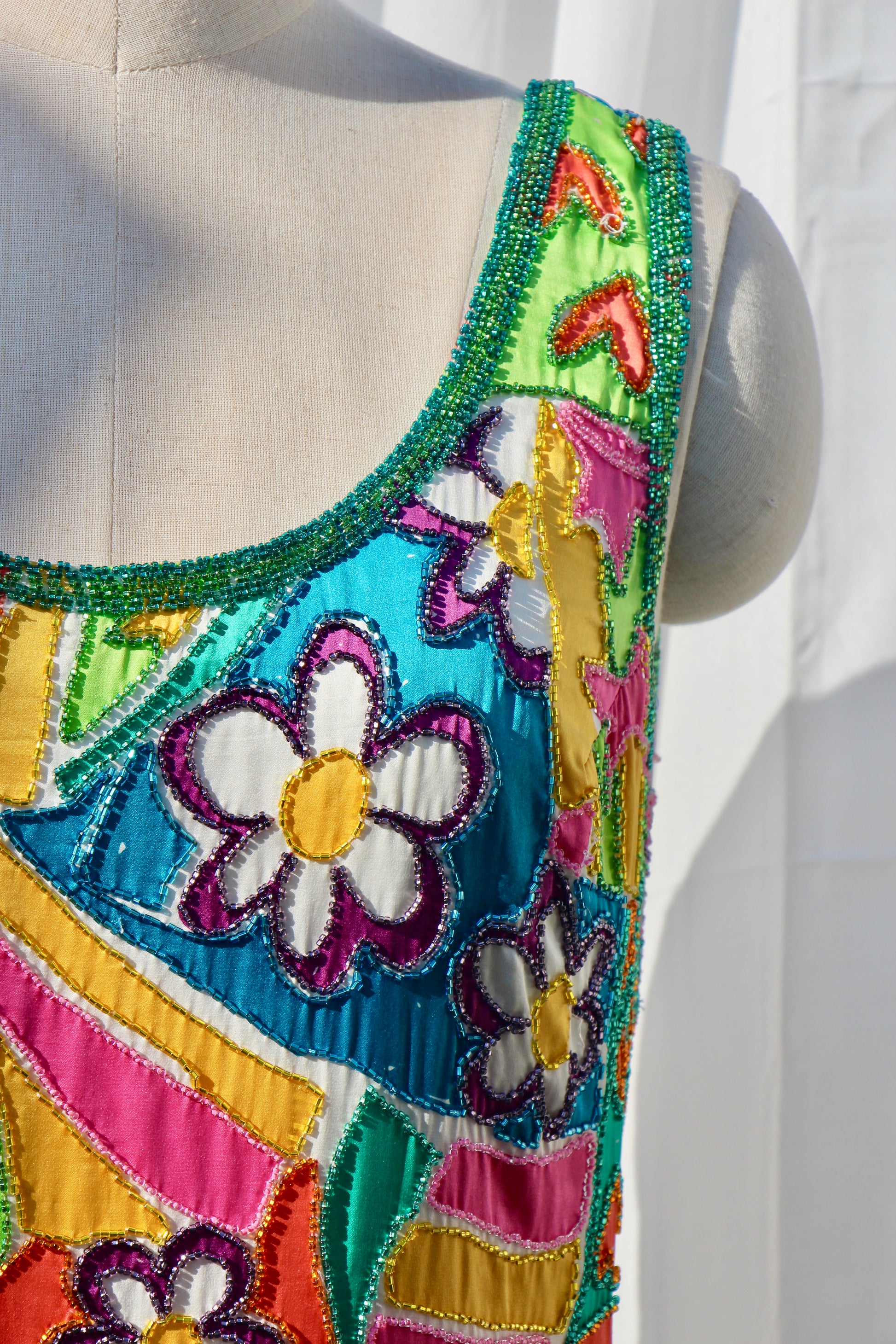 100% silk dress with hand-dyed and hand-beaded vintage dress and low back.